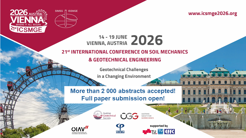 The International Conference on Soil Mechanics and Geotechnical Engineering (ICSMGE 2026), the flagship event of ISSMGE, will take place in Vienna, Austria, from June 14–19, 2026. Marking the 100th anniversary of Karl Terzaghi’s seminal work, this historic gathering will bring together geotechnical experts from around the world to celebrate the past and explore the future of the field. : https://icsmge2026.org |
